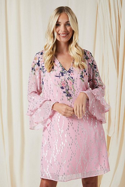 Wallis Petite Floral Metallic Ruffle Sleeve Shift Dress