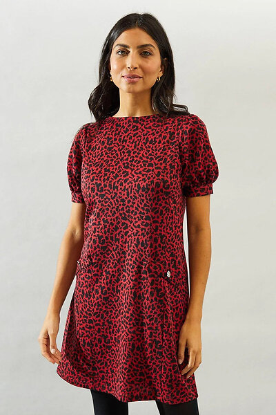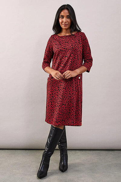 Sosandar Knit Pocket Detail Shift Leopard Dress
