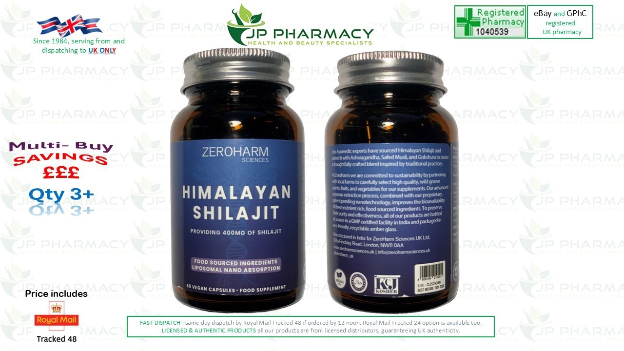 SHILAJIT 60 Capsules 1000mg Per Capsule HIGH Potency Premium Quality Vegan NO FILLERS NO Binders Non GMO Made in UK