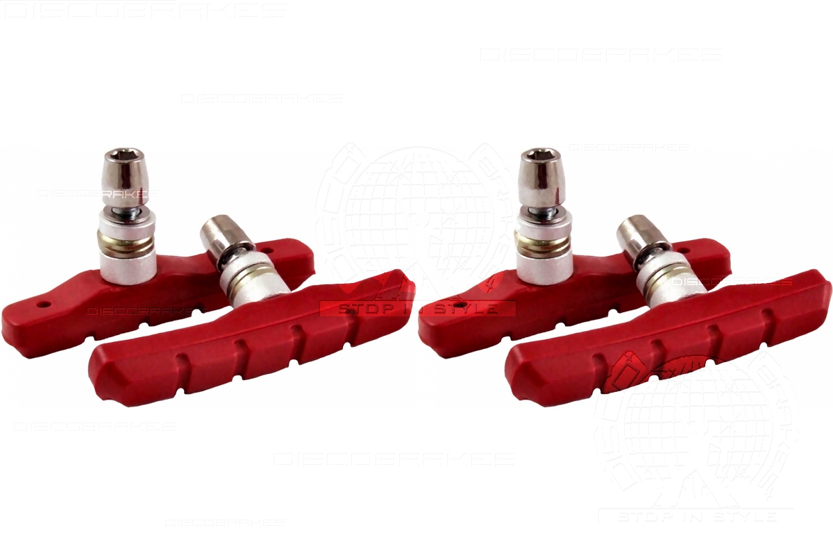 4 Pairs (8 Pads) Red V Brake Pads for Shimano SRAM Avid Tektro - Length 72mm