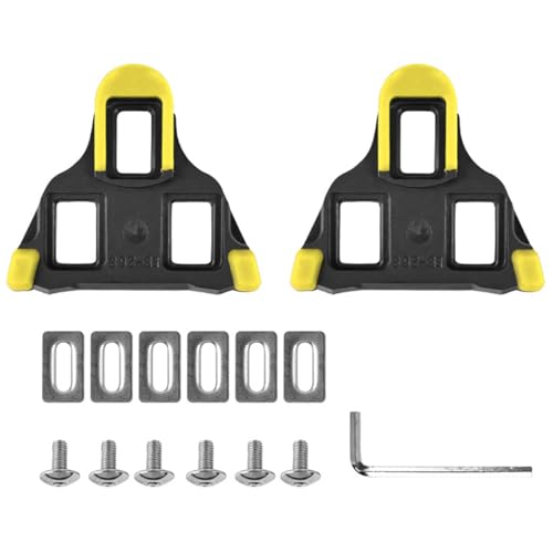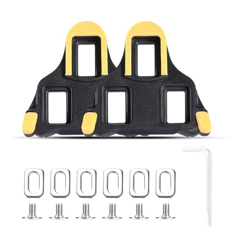 SPD Cleats for Cycling Shoes,1Set Compatible Shimano SPD-SL Pedals SH11 SH12 SH10 System,Yellow Replacement Road Mountain Bike Cleat,Durable Anti Slip with Installation Set for Indoor and MTB Bicycle