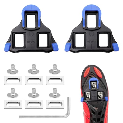 Pedal Cleats for Shimano-SPD-SL Compatible with SM-SH12 (2 Degree Float Blue) Bike Cleats Replacement, Indoor Cycling & Road Bike Cleat Set, Fully Compatible 3 Bolt/Road Bike Shoes