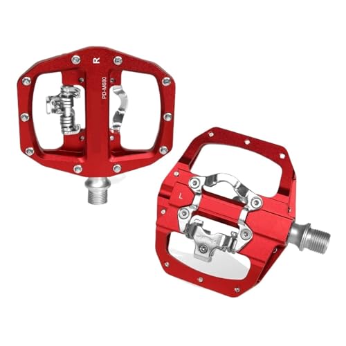 ,Compatible For BUCKLOS, Mountain Bike Pedals 3 Sealed Bearing PD-M680 Dual Clipless Flat & Lock Pedal Aluminum,Compatible For Shimano SPD(Red)