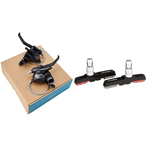 SHIMANO Altus ST-EF41 EZ fire Plus STI Set for V-Brakes, 3x7-speed, 2-Finger Lever, Black One Size,STEF41P7AL & Clarks Elite MTB/Hybrid Brake Pads Integral Block W/Triple Compound Insert Pads, 72 mm