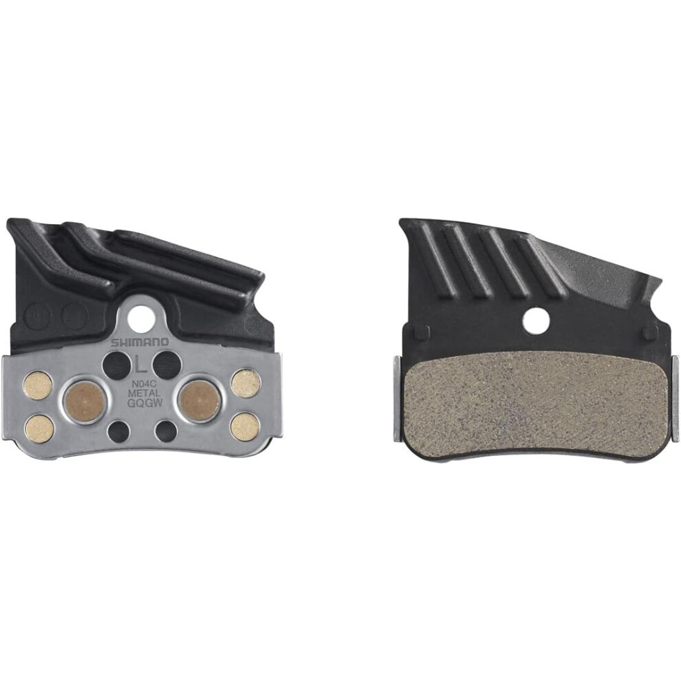 SHIMANO N04C disc pads and spring, alloy/stainless back with cooling fins, metal sintered, Black, One Size