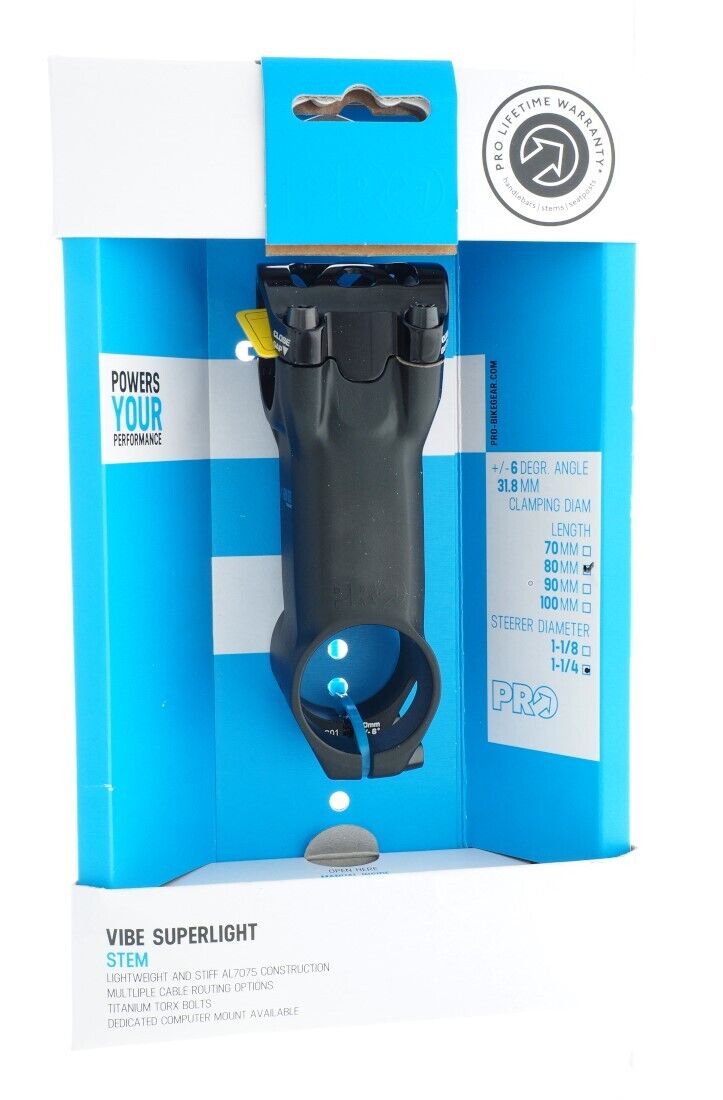 Shimano PRO VIBE Super Light Alloy Road Bike Stem +/-6° Black 1-1/4" 31.8 x 80mm