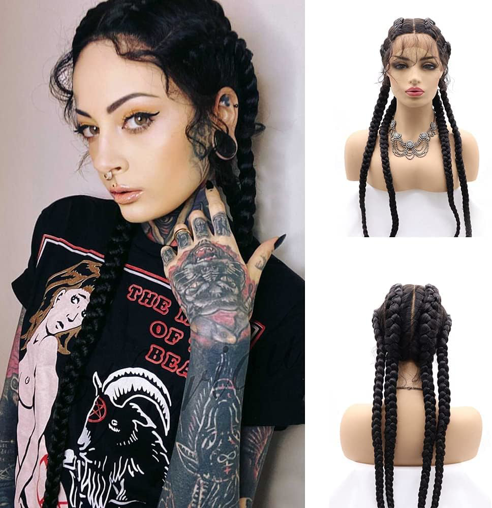 Xiweiya Super Long 100% Hand-Braided Lace Front Box Braided Wigs 360 Swiss Lace