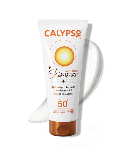 Calypso Shimmer Sun Lotion SPF50 + | Very High UVA UVB Protection, Water Resistant, Shimmering Protection for Face and Body, 100ml