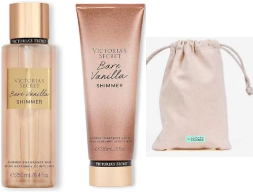 VS Bare Vanilla Body Spray Shimmer and Lotion Shimmer Gift Set for Women - Savo