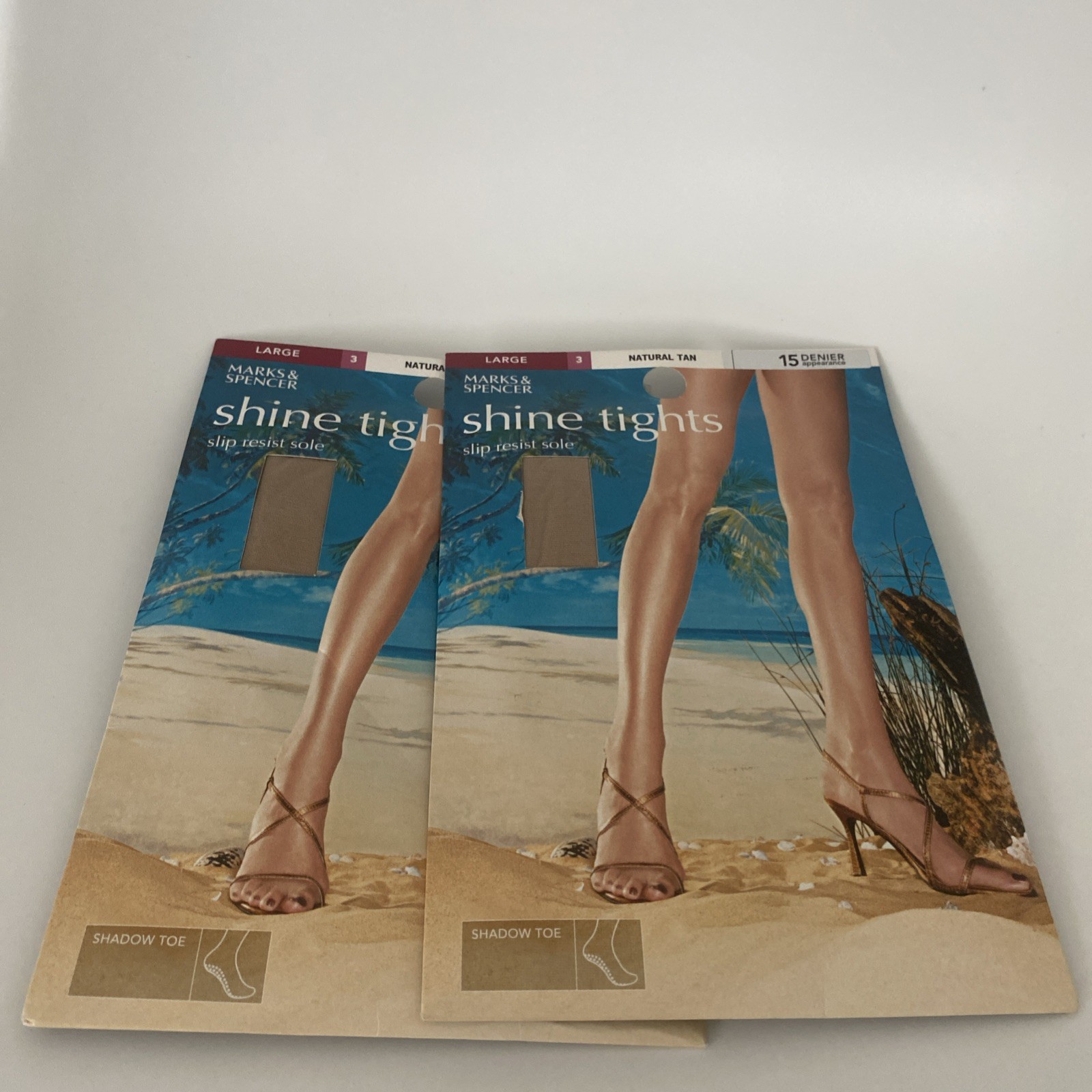 Marks & Spencer 15 Denier Shine Tights Natural Tan Size Large X2