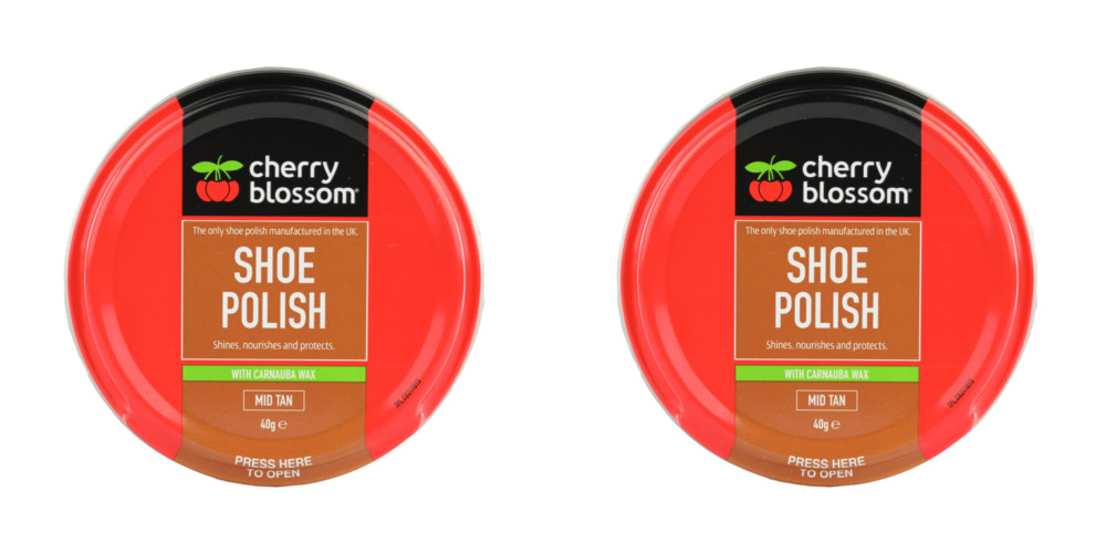 2x Cherry Blossom Traditional Leather Shoe Boot Polish Shine Wax 50ml - Mid Tan