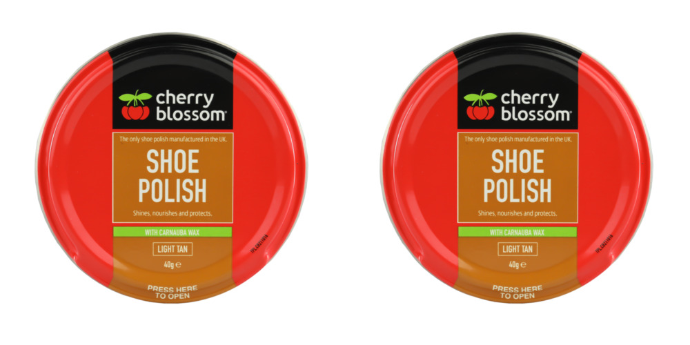 2x Cherry Blossom Traditional Leather Shoe Boot Polish Shine Wax 50ml- Light Tan