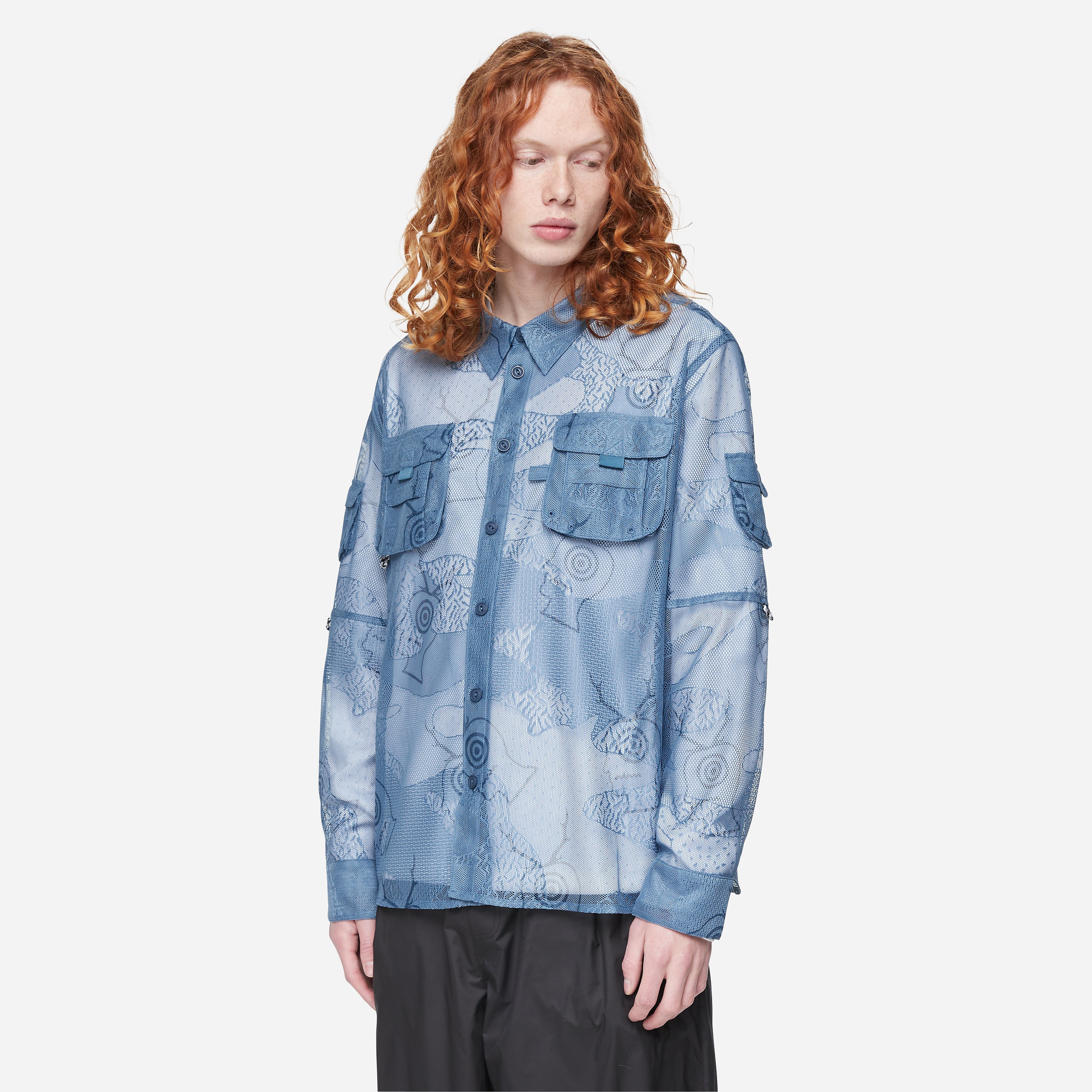 Brain Dead x South2 West8 Engineered Mesh Fishing Shirt in Blue - Size: M, Blue