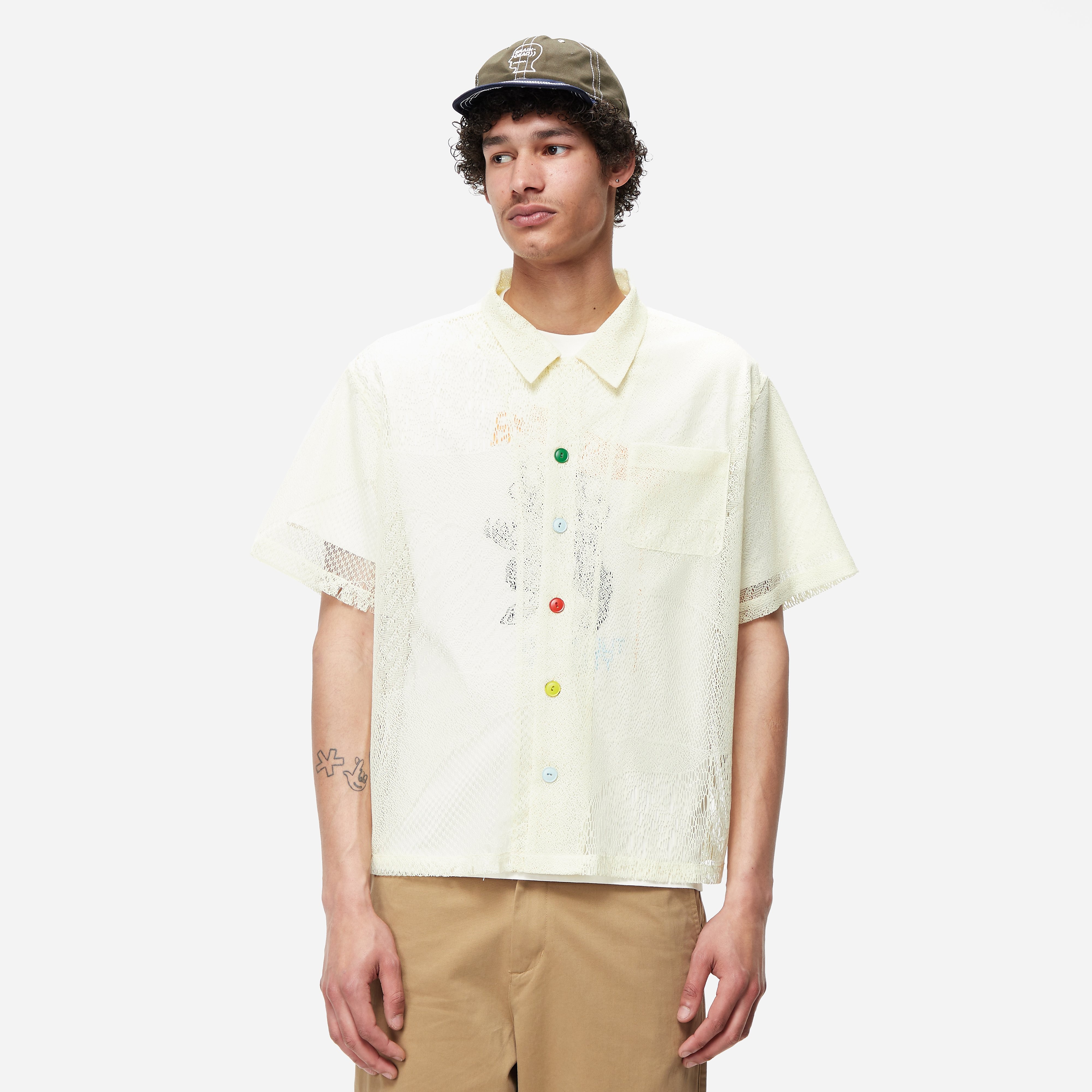 Brain Dead Engined Mesh Ss Shirt in White - Size: S, White