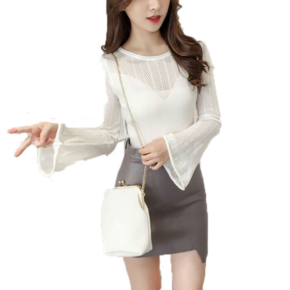 Mock Neck Mesh Top For Women, Sweet Long Sleeve Solid Color Shirt With Hollow Design In Slim Fit Cut For Office Date Night Wear