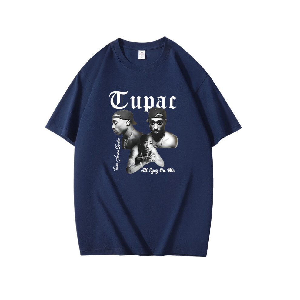 (Navy [White Label], XL) Summer New Men's T-shirt Rapper Tupac 2pac Print