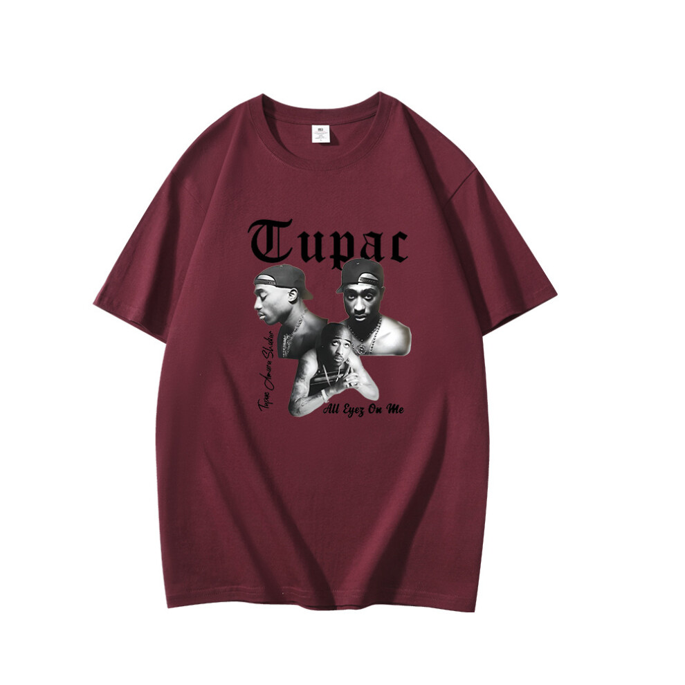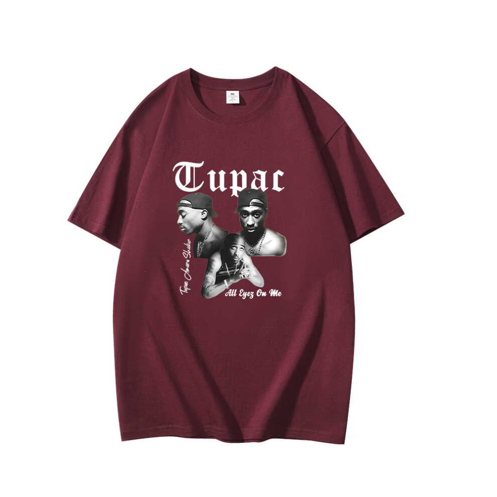 (Burgundy [Black Label], L) Summer New Men's T-shirt Rapper Tupac 2pac Print