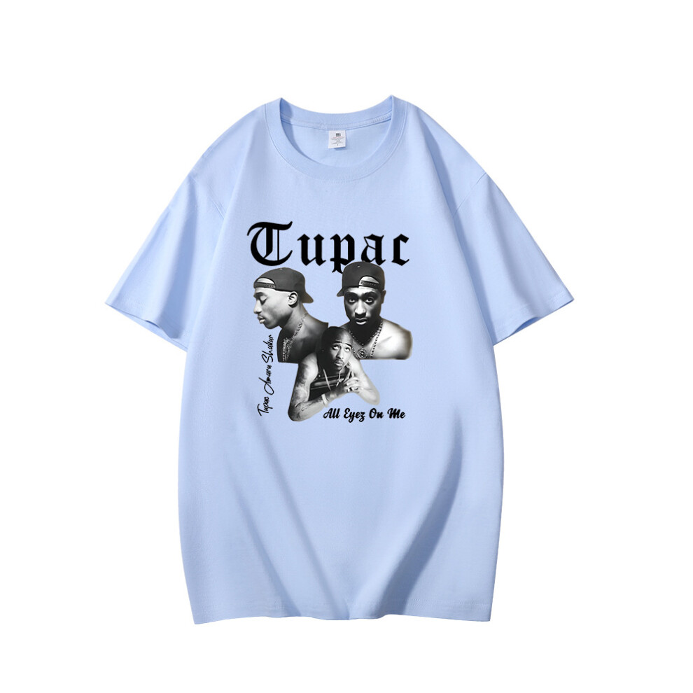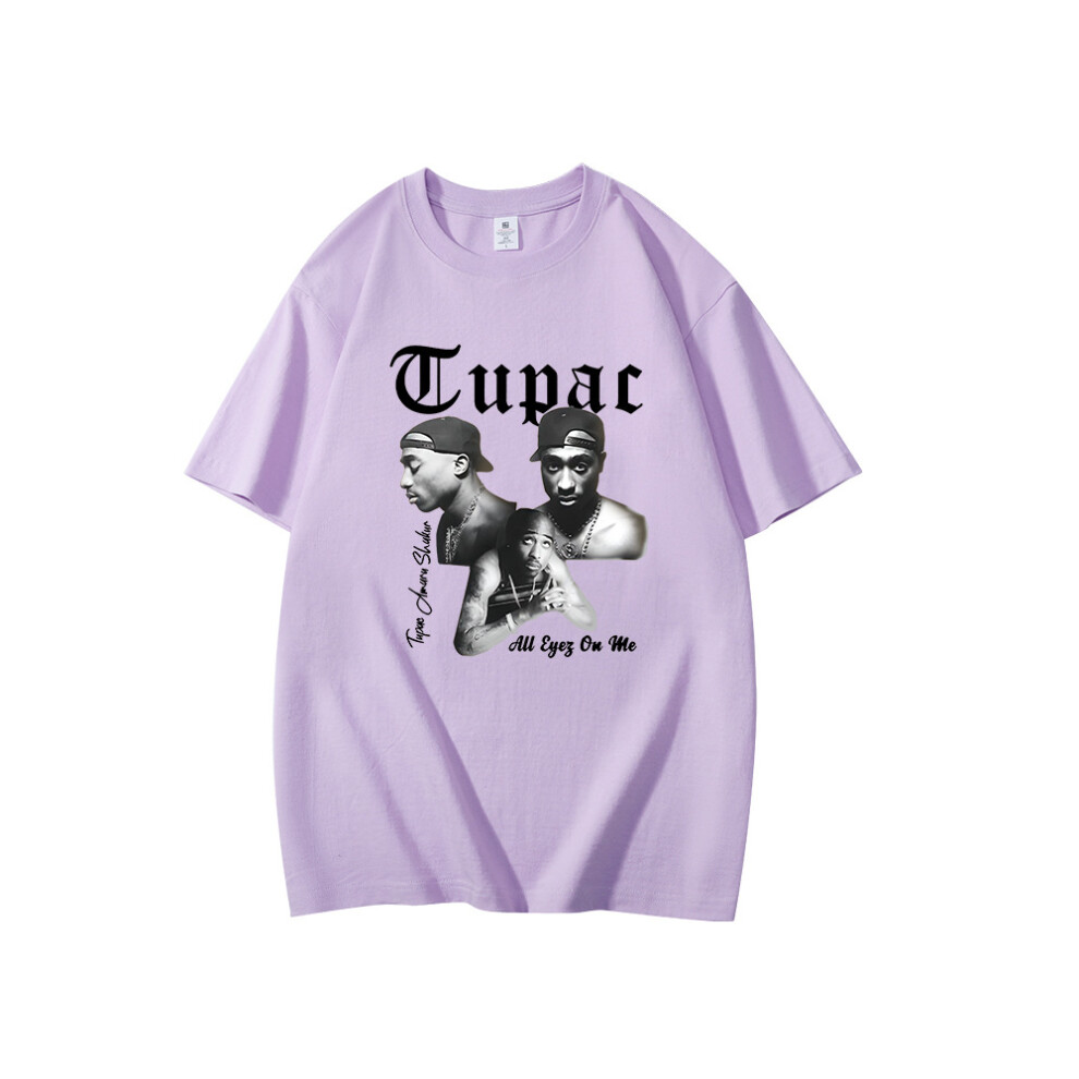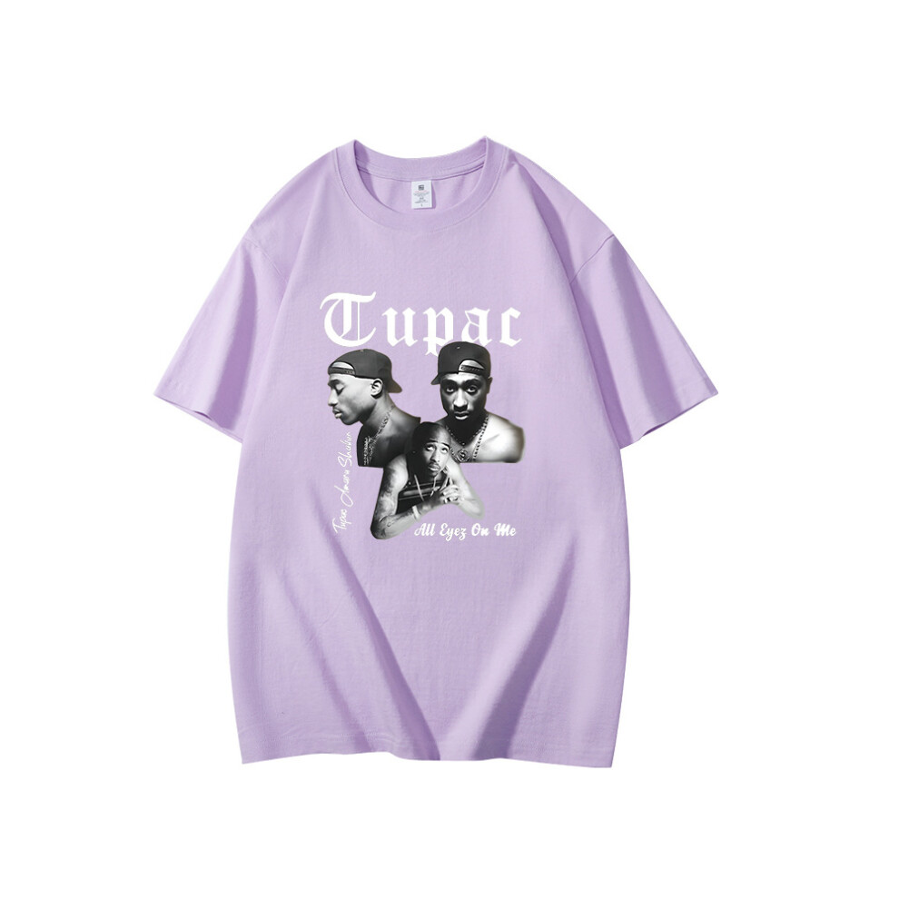 (Light Purple [White Label], M) Summer New Men's T-shirt Rapper Tupac 2pac Print