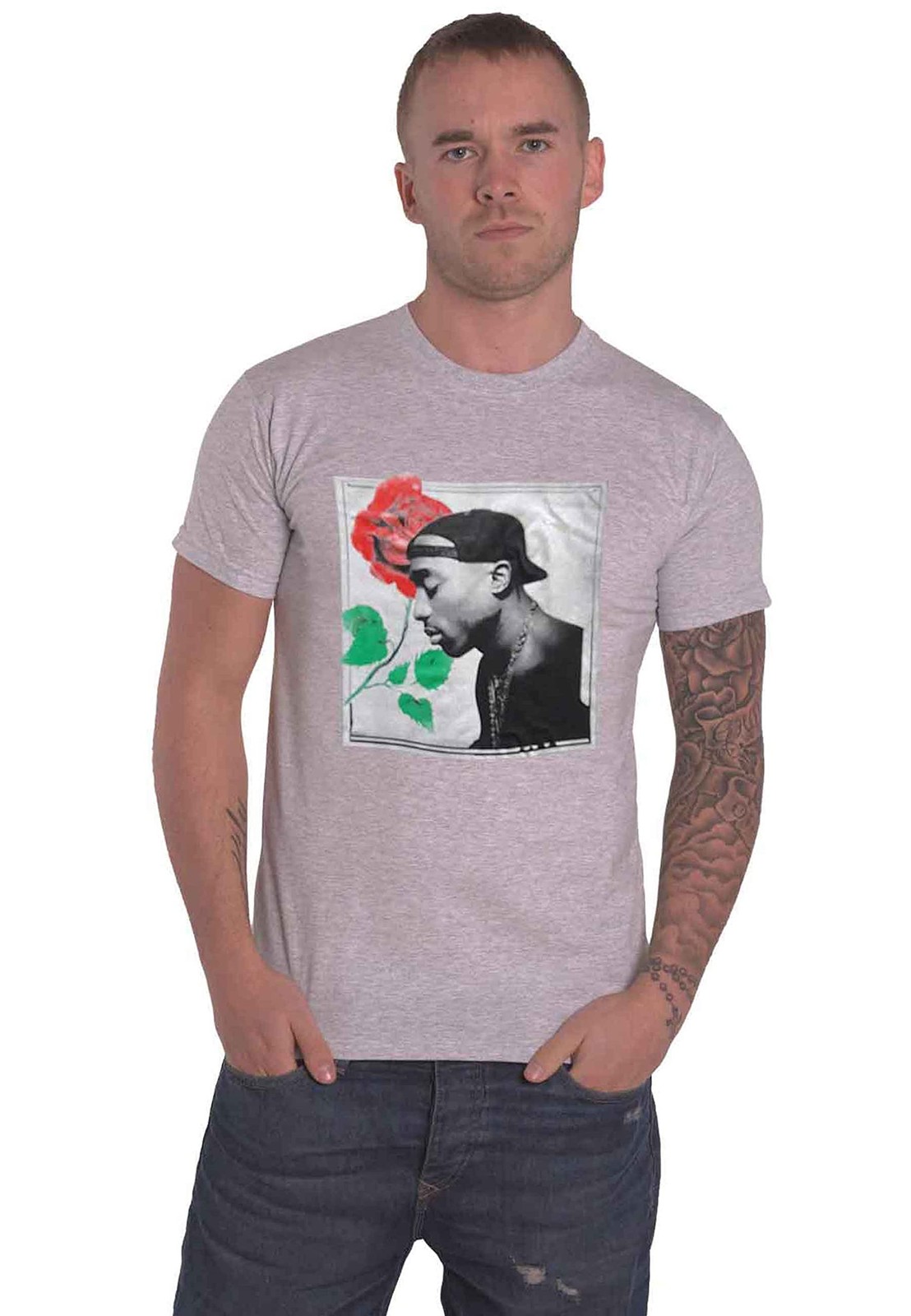 Tupac T Shirt Rose Portrait Logo New Official Man Grey M Grey