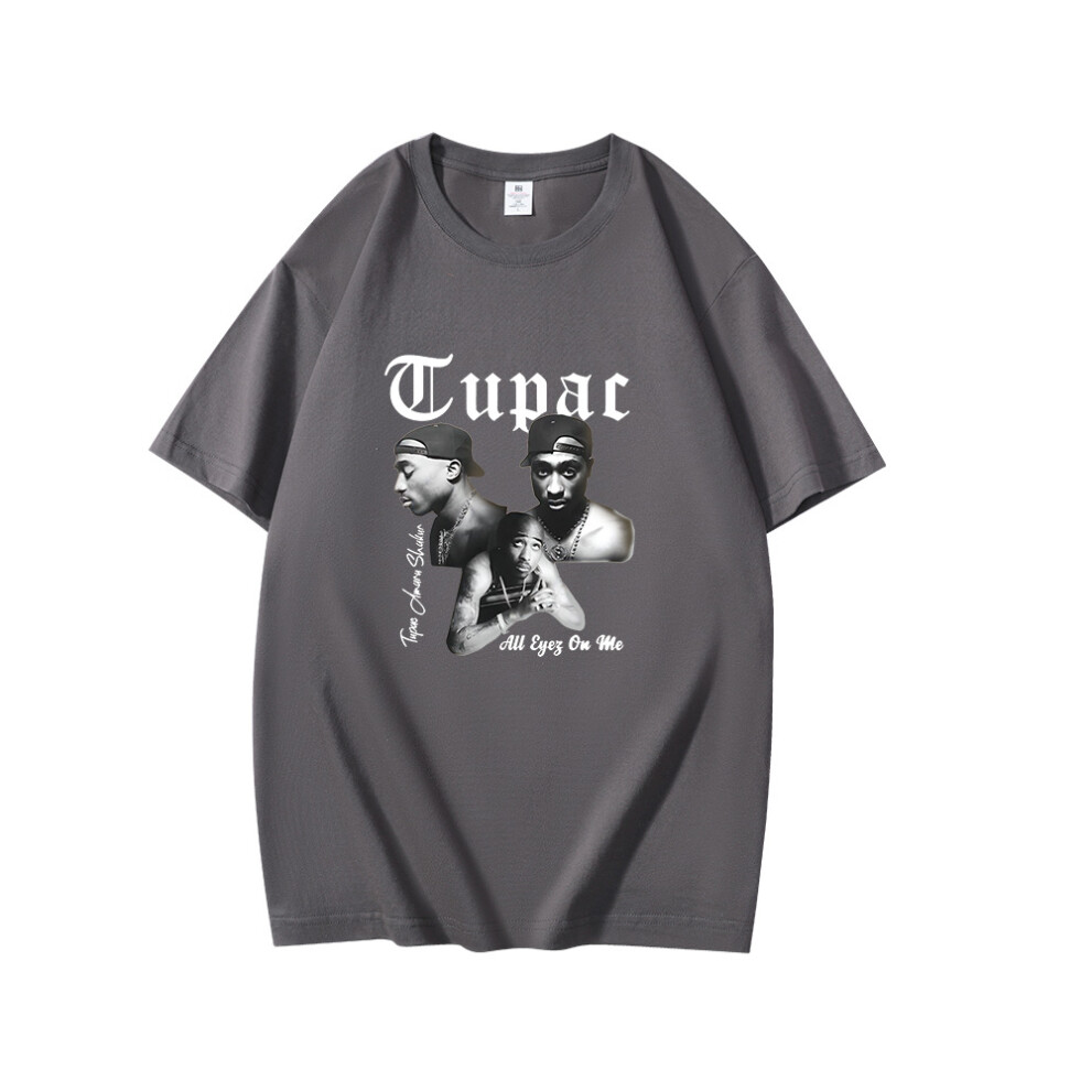 (Dark Gray [White Label], XL) Summer New Men's T-shirt Rapper Tupac 2pac Print