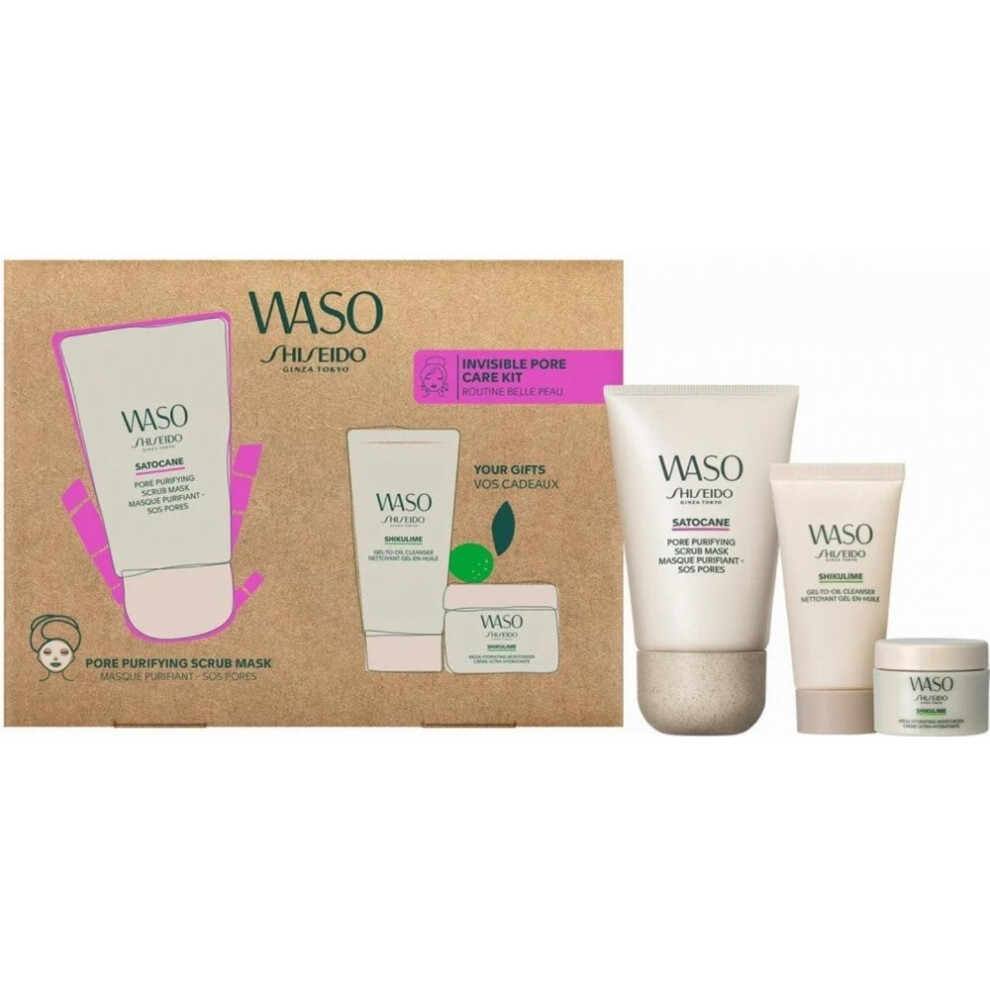 Shiseido Waso Invisible Pore Care Gift Set: Moisturiser 15ml - Cleanser 30ml - Scrub Mask 80ml
