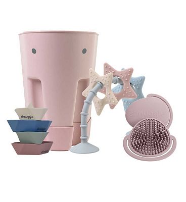 Shnuggle Ellie Bath Toy Storage Scoop | Baby & Toddler Drying Caddy with Drip Tray - Blush