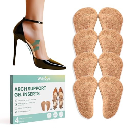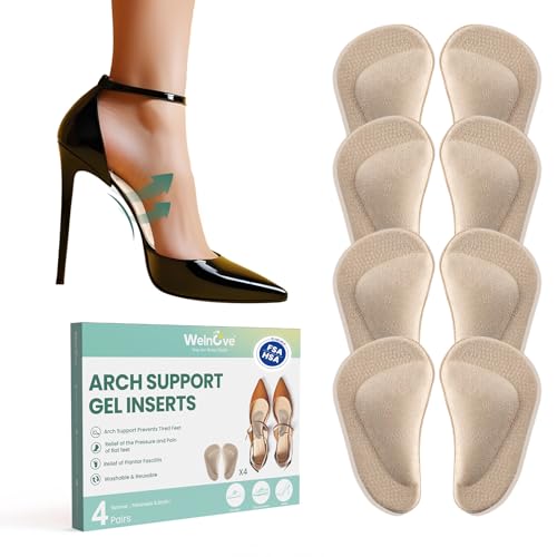 Welnove 4-Pair Gel Arch Support Insoles for Plantar Fasciitis, Flat Feet, Foot Pain - Soft Arch Support Heel Pads, Beige, Unisex Adult, Adults with foot issues, Comfort Seekers, Shoe Insert, Insoles