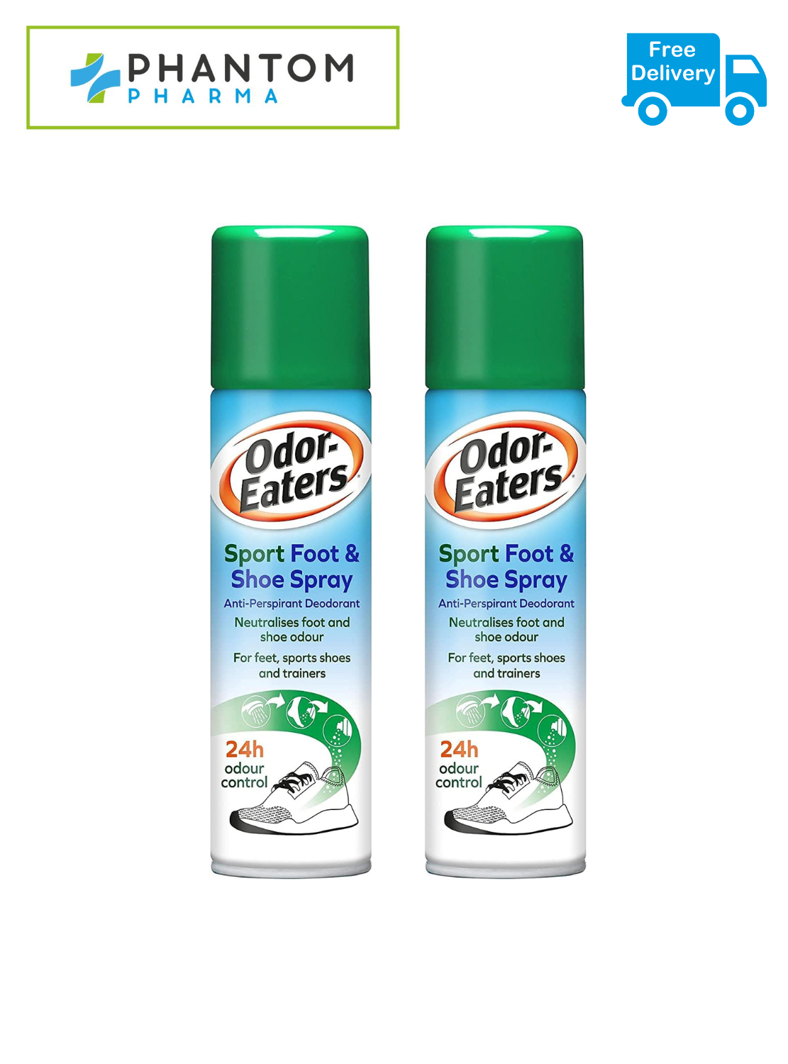 2x Odor Eaters Sport Foot & Shoe Anti Perspirant Odour Free Spray 150ml