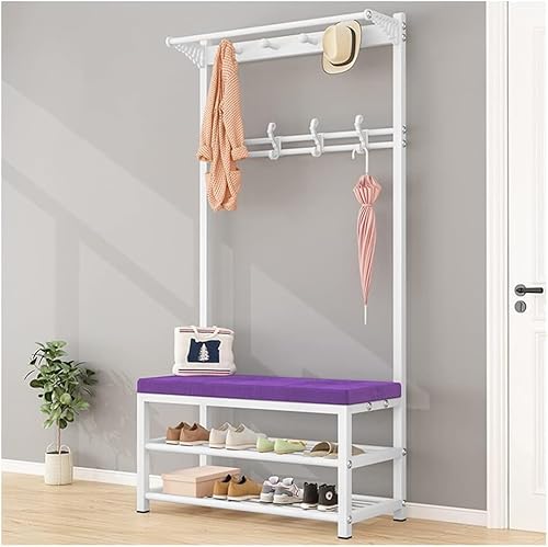 WHGURVH Hall Tree Shoe Rack with Bench and Organizer, Entryway Coat Rack and Shoe Storage, 4-in-1 Design for Home and Closet Organization(80x33x170cm,C)