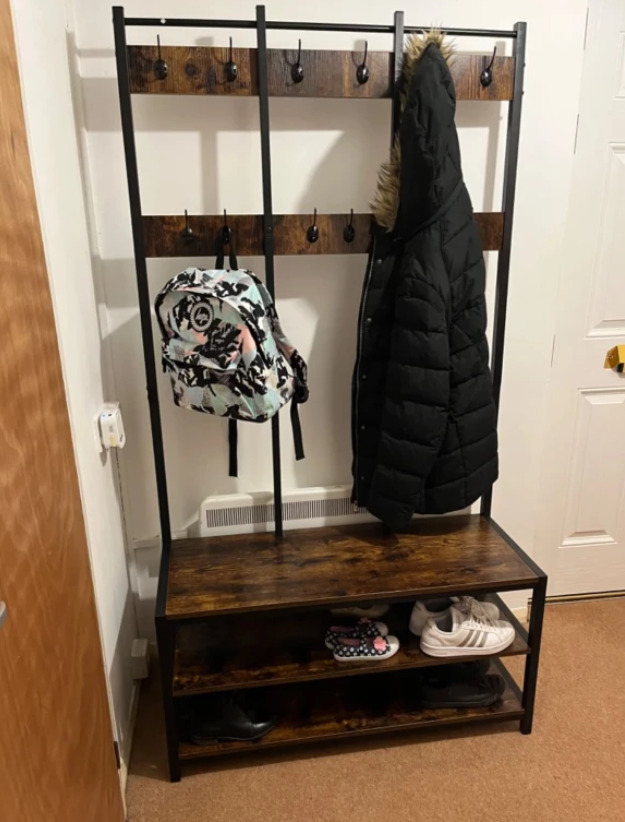VDLLQYN, With Shoe Bench and Hooks Industrial Entryway nizer with 2 Tier Shoe Rack Easy Assembly Hall Tree for Entryway Hallway,Shoe Rack Bench((70 x 27 x 158cm))