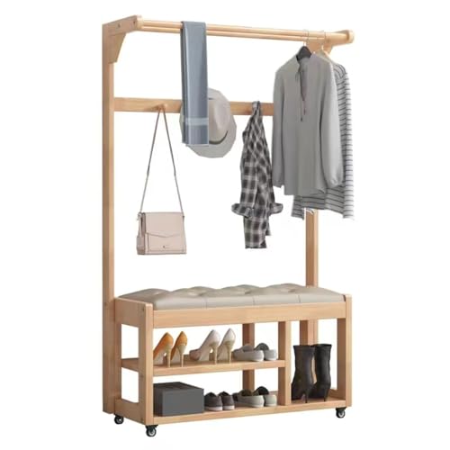 Shoe Rack Bench with Coat Rack Solid Wood Frame Holds Up to 200 Kg Storage Bench Thickened Clothes Rail Design Entryway Bench for Living Room, Bedroom, Hallway(80cm)