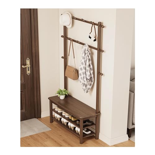 Coat Rack with Bench Hall Trees Coat and Shoe Rack Entryway Bench with Coat Rack and Shoe Storage, 3-In-1 Freestanding Hall Tree with Storage Bench with Shelf and Hanging H,Bronze-70*32*175cm