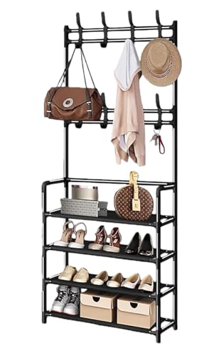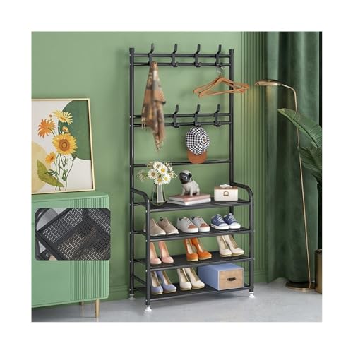 4 Tier Shoe Rack with Hooks, Coat Rack and Practical Hooks for Bedroom, Hallway, Office Entryway Coat Rack with 8 Hooks 60cm,black