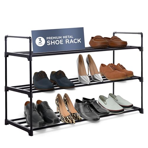 NIAWECAN Shoe Rack, 3 Tier Stackable Shoe Rack Small, Metal Black Shoe Racks, Durable Shoe Stand Lightweight Shoes Rack Storage Organiser for Narrow Place, Hallway, Closet, Entryway, Quick Assembly