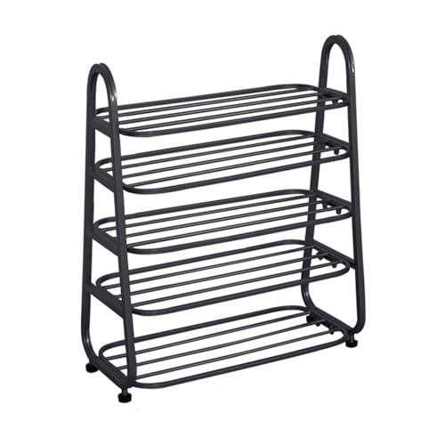 Ywinler 5 Tier Shoe Racks, Metal Shoe Storage Organiser Tall Narrow Shoe Racks Stackable Slim Shoe Shelf for Hallway, Entryway, Living Room, 43 × 25 × 72cm, Black