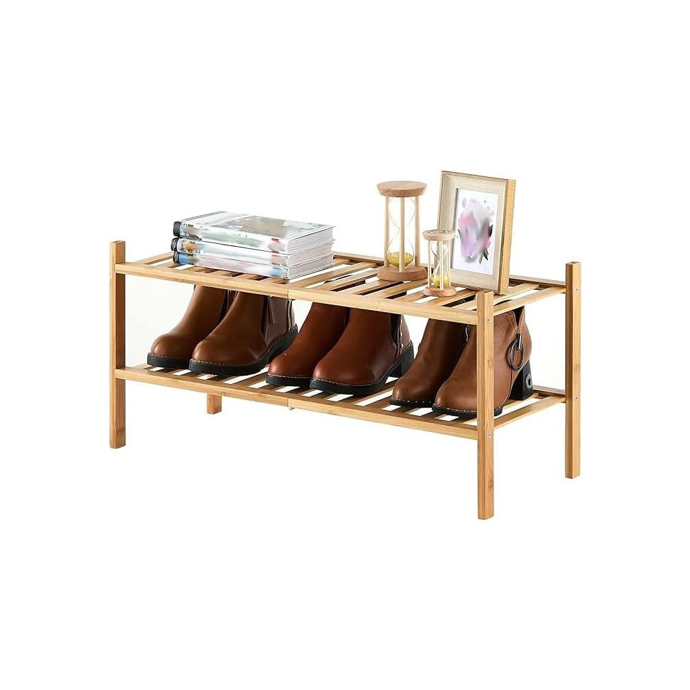 kiplant Small Shoe Rack, 2-Tier Bamboo Wood Shoe Rack for Entryway, Stackable Shoe Organizer for Hallway Closet, Free Standing Shoe Racks for Indoor & Outdoor