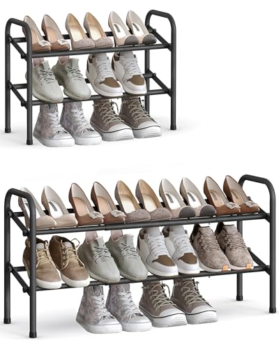 2-Tier Shoe Rack for Entryway, Stackable | Heavy Duty | Multi-Function, Free Standing Shoe Racks for Bedroom Hallway Closet