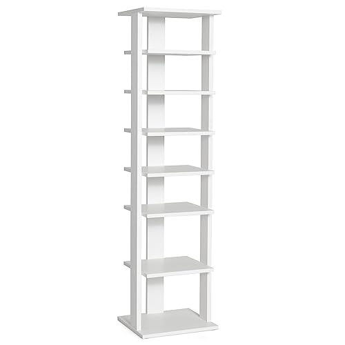 CASART 7-Tier Shoe Rack, Shoe Storage Organizer Stand Shelf, Detachable Board Multiple Layers, Vertical Shoe Tower for Narrow Closet, Entryway, Hallway and Bedroom (28.5 x 25.5 x 110cm, White)
