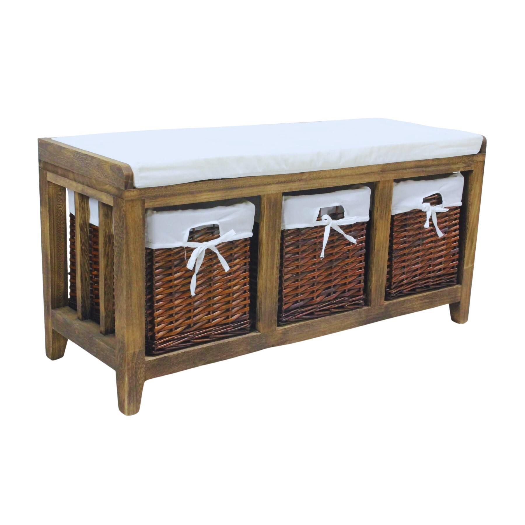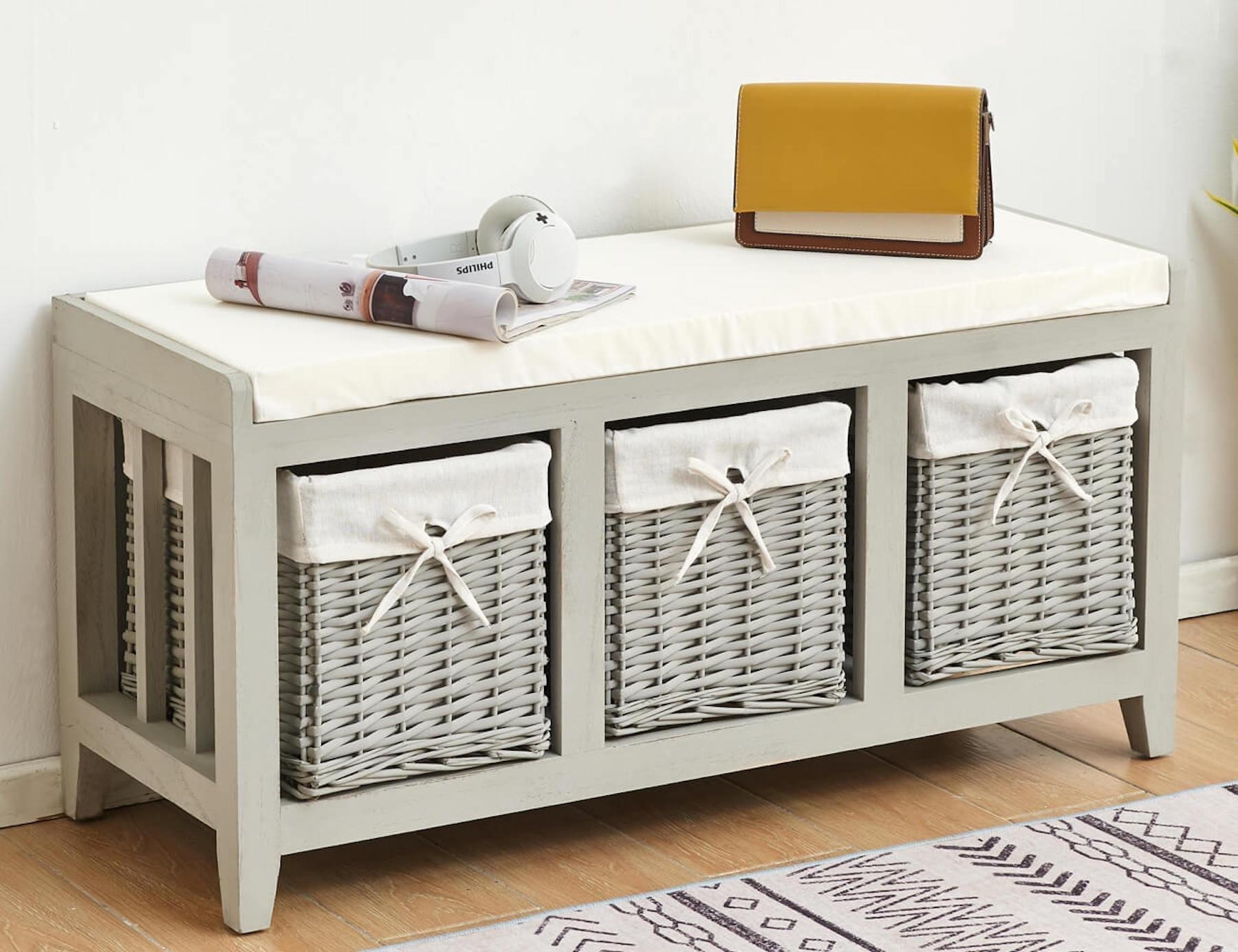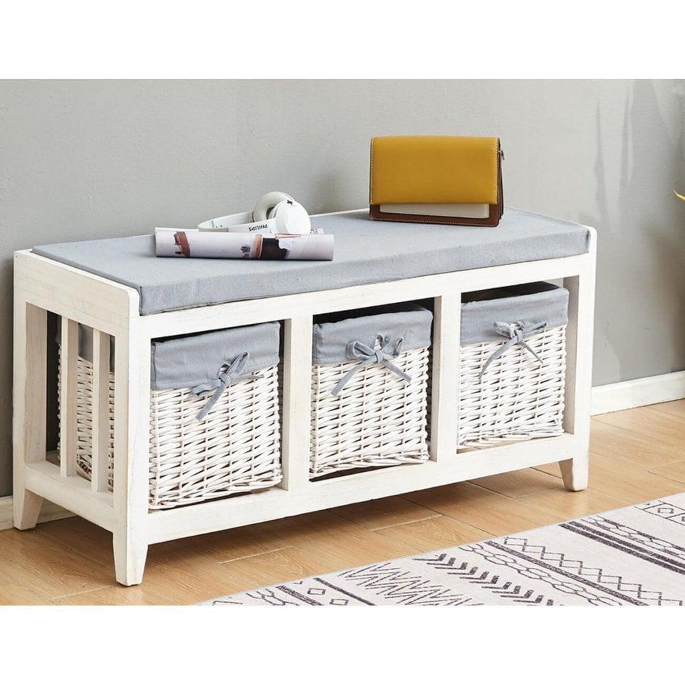 Lincoln Wicker Basket 3 Drawer Shoe Storage Bench Unit
