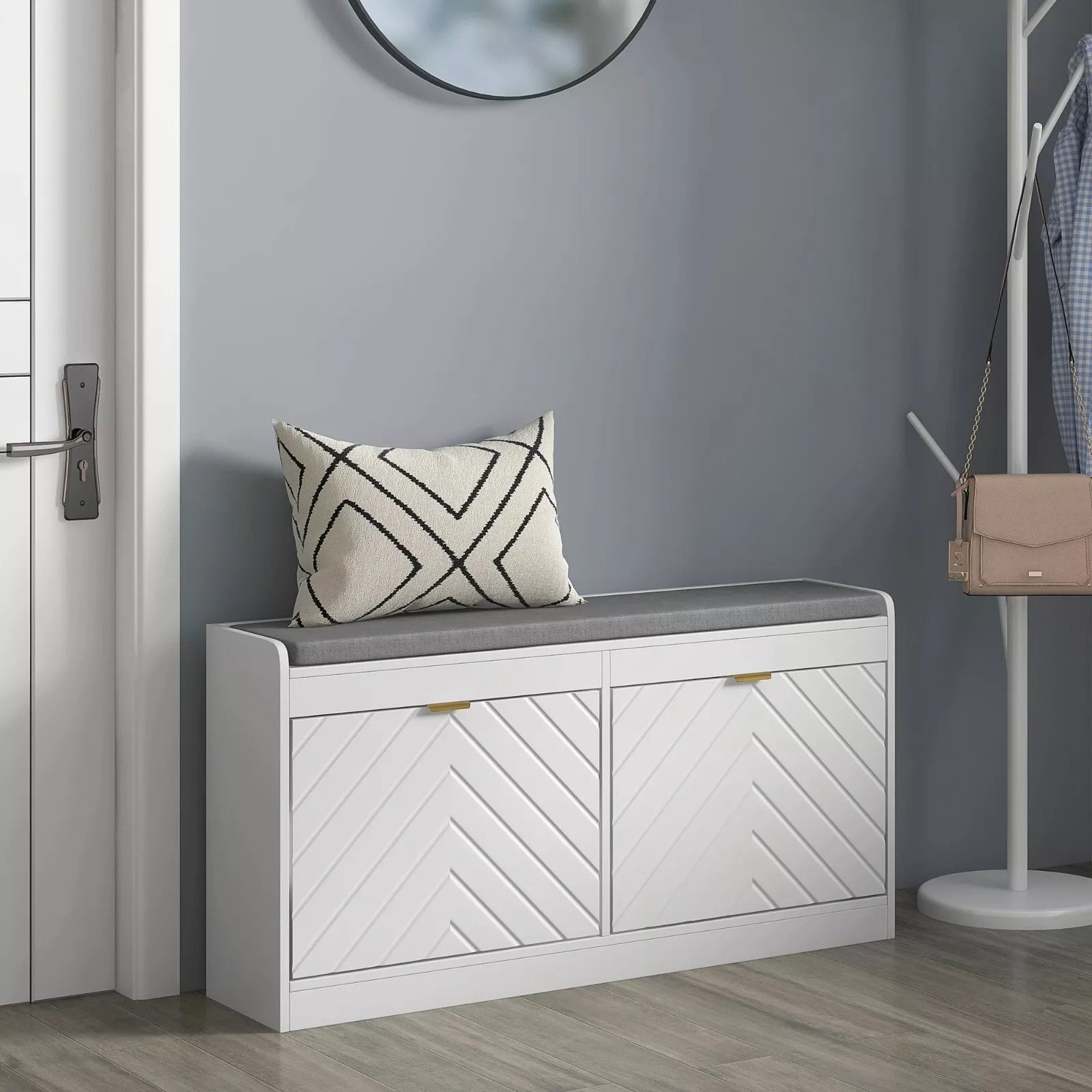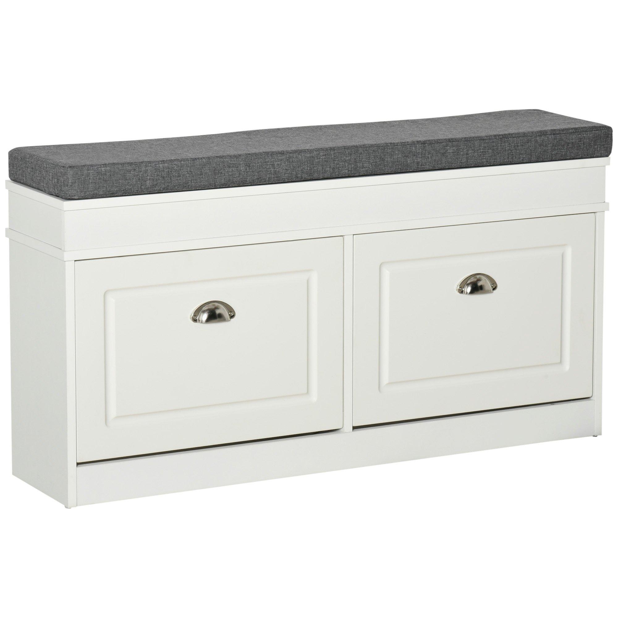 White Shoe Storage Bench Seat Cushion 2 Flip Drawers Hallway Cabinet Organiser