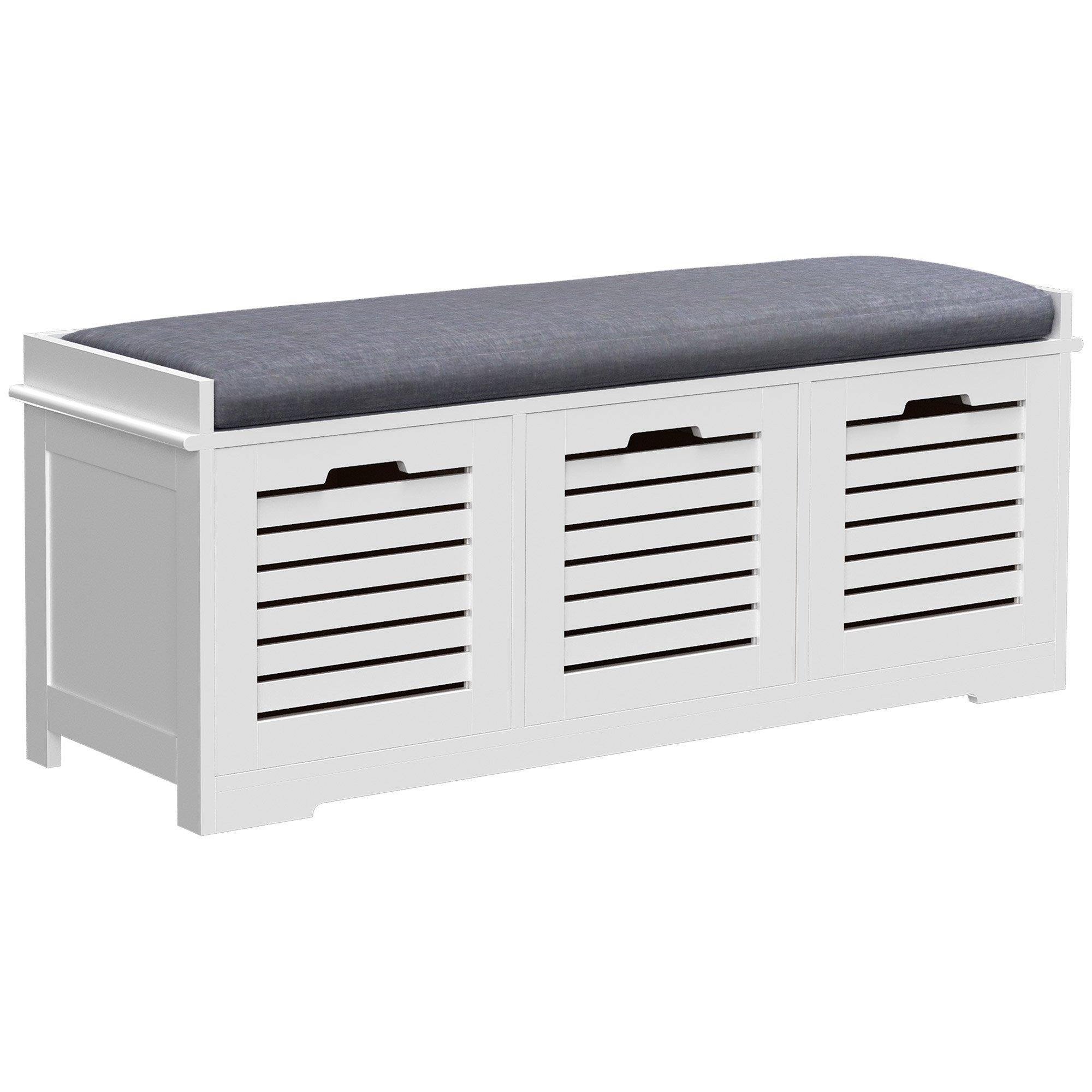 3Drawers Shoe Storage Organizer Bench Cushion Seater Slatted Doors Compartments