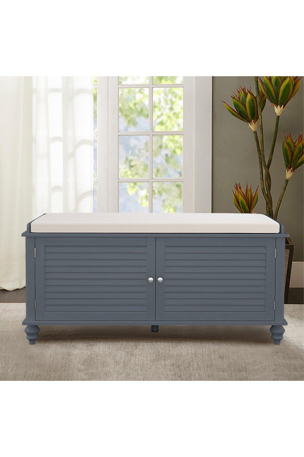 3 Door Shoe Storage Bench with Cushion Seat Slatted Door Elevated Base