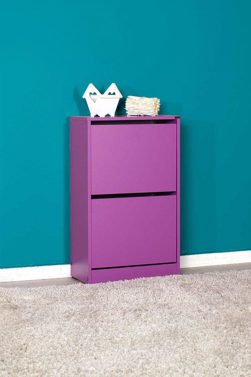 Two Tier Shoe Storage Unit Cabinet Purple