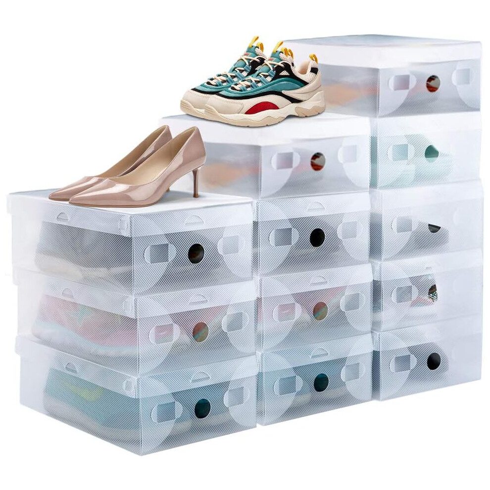 12pcs Plastic Shoe Boxes Clear Shoe Box Storage Foldable Stackable Shoebox 28 cm x 18 cm x 9.5 cm Shoe Containers Organizer