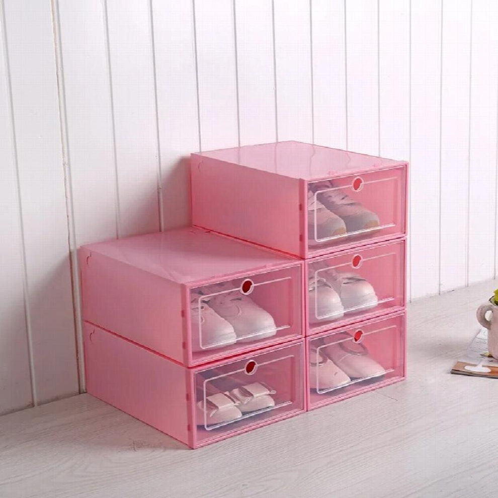 6pcs/Set Fold Plastic Shoes Case Thickened Transparent Drawer Case Plastic Shoe Boxes Stackable Box Shoe Organizer Shoebox