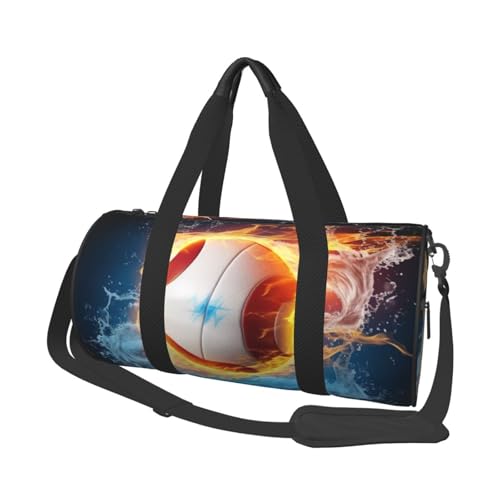 Volleyball with fire and ice Printed Sports Gym Bag with Wet Pocket & Shoes Compartment, Travel Duffel Bag for Men Women
