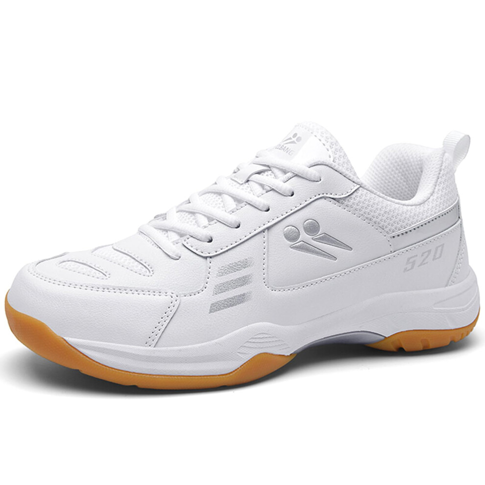 PENXZT Badminton Tennis Shoes Mens Women Indoor Court Training Shoes Anti-Slip Lightweight for Racketball Squash Volleyball,White,4 UK