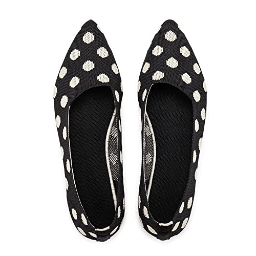 Frank Mully Womens Pointed Toe Ballet Flat Knit Dress Shoes Low Wedge Flat Shoes Comfort Slip On Flats Shoes for Woman Classic Softable Shoes, Point Black, 7.5 UK