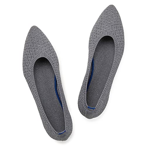 Frank Mully Womens Pointed Toe Ballet Flat Knit Dress Shoes Low Wedge Flat Shoes Comfort Slip On Flats Shoes for Woman Classic Softable Shoes Grey, 7.5 UK