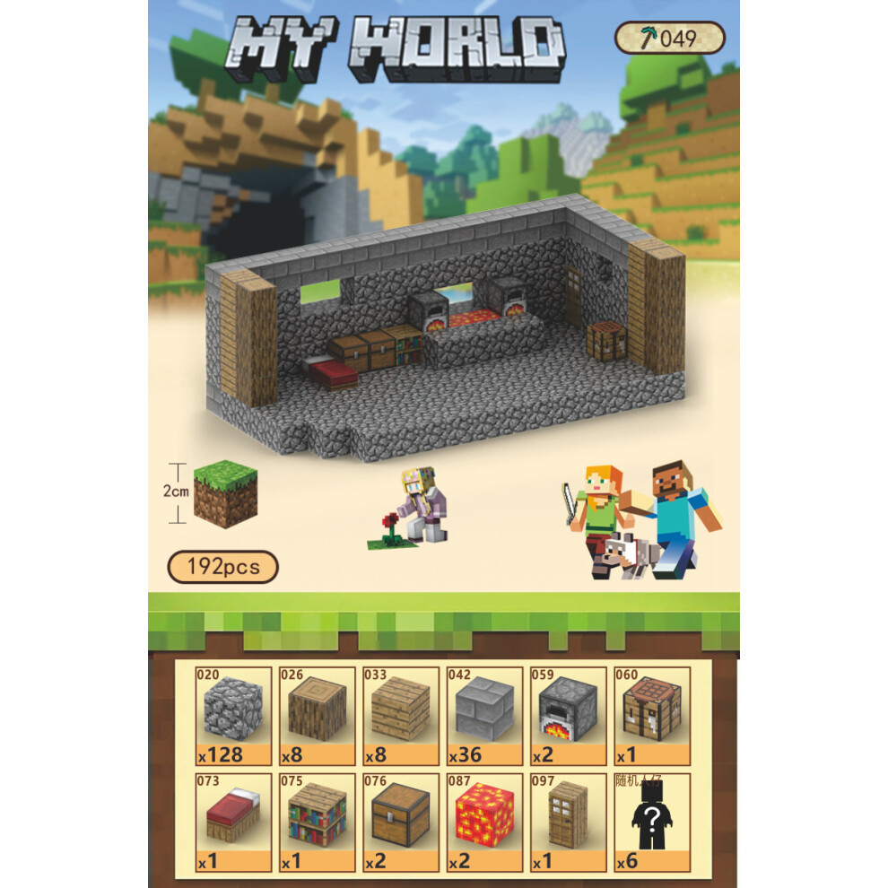 (T049-Blacksmith Shop-192 PCS) Minecraft Magnetic Cubes Block Children's Educational Figure Assembly Game Surrounding Mini Building Block Toys